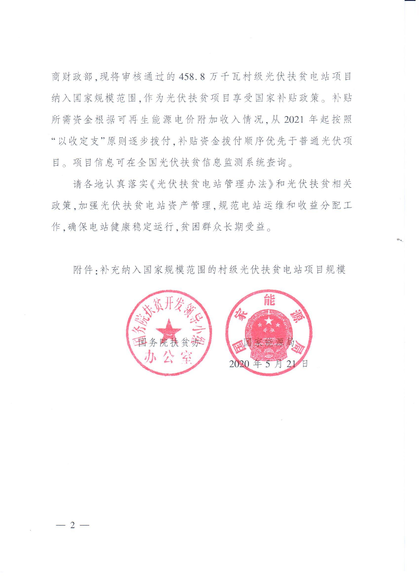 剛剛,國務(wù)院扶貧辦和國家能源局聯(lián)合下發(fā)了《關(guān)于將有關(guān)村級光伏扶貧電站項(xiàng)目納入國家規(guī)模范圍的通知(國開辦發(fā)[2020]16號)》。