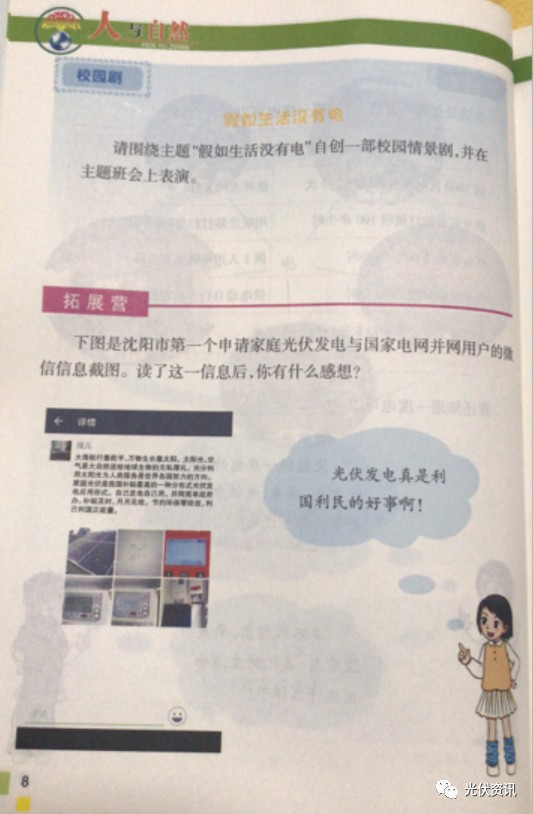 光伏發(fā)電已經(jīng)被收入小學四年級課本《人與自然》!