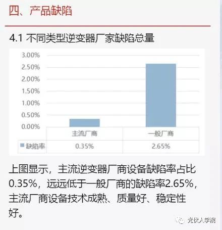 同時(shí),調(diào)查顯示主流逆變器廠商的設(shè)備缺陷率占比為0.35%,要遠(yuǎn)遠(yuǎn)低于一般廠商的缺陷率2.65%。主流逆變器廠商的設(shè)備更為可靠。而自動(dòng)化設(shè)備缺陷造成故障(事故或者考核)的占比最高,高達(dá)81.82%。