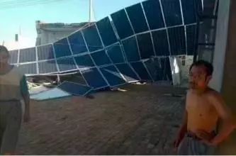 據了解,當天傍晚當地下了大雪,同時還伴隨著6-7級的大風。光伏電站的主體結構沒有發(fā)生變形,但頂部的幾塊光伏組件已經被風吹了下來。