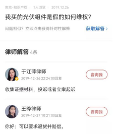 無獨(dú)有偶,同年又有一個(gè)業(yè)主在網(wǎng)絡(luò)上詢問買到假光伏組件如何維權(quán)。