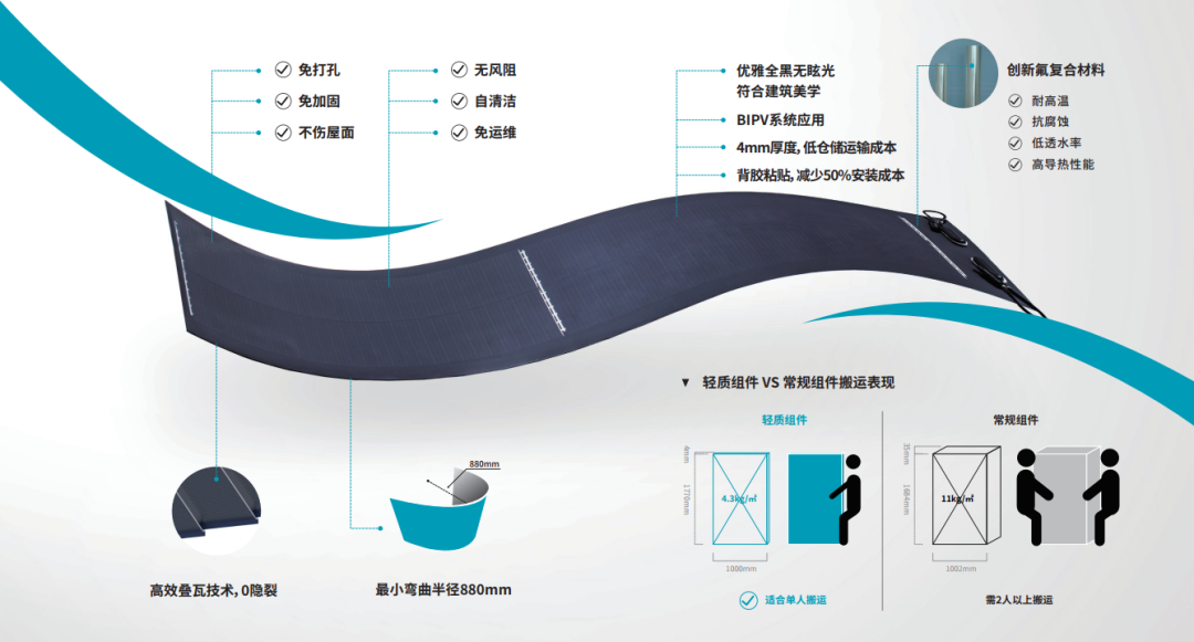傳統(tǒng)組件需要搭配支架,外形笨重不夠美觀,還需掀開瓦片,在檀條安裝組件,易破壞瓦面,存在漏水隱患。