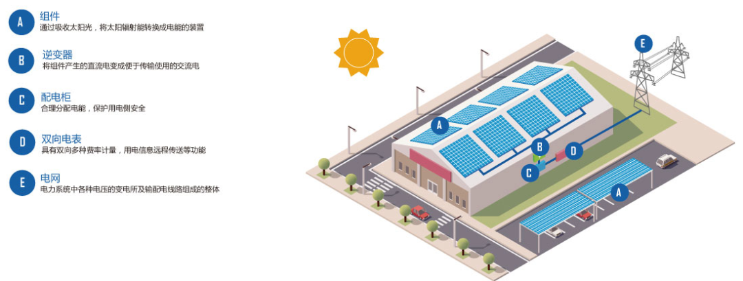 自發(fā)自用,余電上網(wǎng)的并網(wǎng)模式適合白天用電量較大的廠房,自用比例越高,成本回收周期越短。
