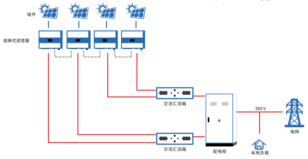 交流匯流箱根據(jù)項(xiàng)目所選用的逆變器臺數(shù),可選取多匯——匯流箱。按實(shí)際需要選擇二匯一、四匯一都可。