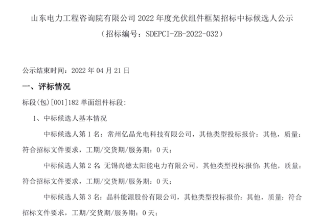 該項(xiàng)目由山東電力工程咨詢院有限公司(國家電投下屬公司)負(fù)責(zé)招標(biāo),共有20家企業(yè)參與投標(biāo),項(xiàng)目招標(biāo)規(guī)模合計(jì)950MW。