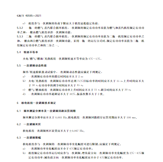 2021年10月11日,國(guó)家標(biāo)準(zhǔn)《并網(wǎng)電源一次調(diào)頻技術(shù)規(guī)定及試驗(yàn)導(dǎo)則》GB/T 40595-2021正式發(fā)布,并且于2022年5月1日起正式實(shí)施。文件明確:接入35kV及以上電壓等級(jí)的儲(chǔ)能電站、風(fēng)電、光伏等并網(wǎng)電源要按照該文件執(zhí)行。其中儲(chǔ)能電站一次調(diào)頻動(dòng)態(tài)性能應(yīng)滿足下列規(guī)定: