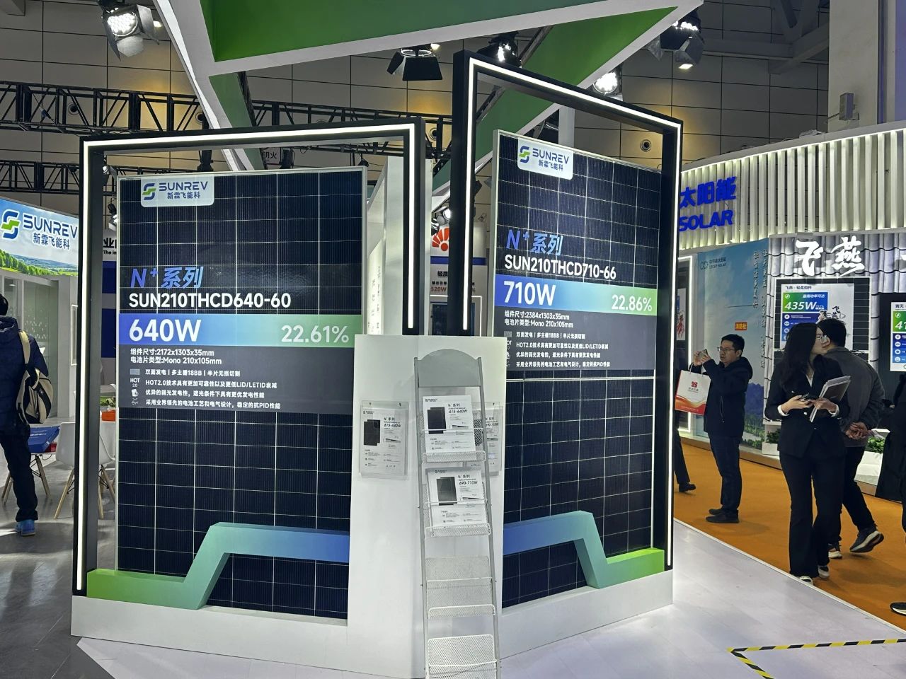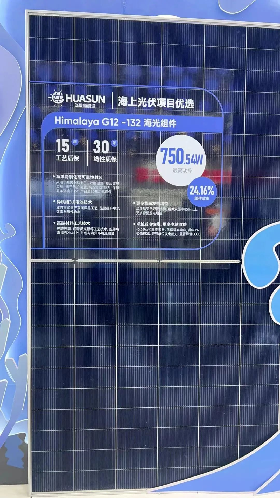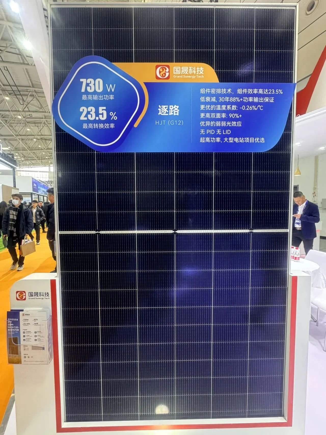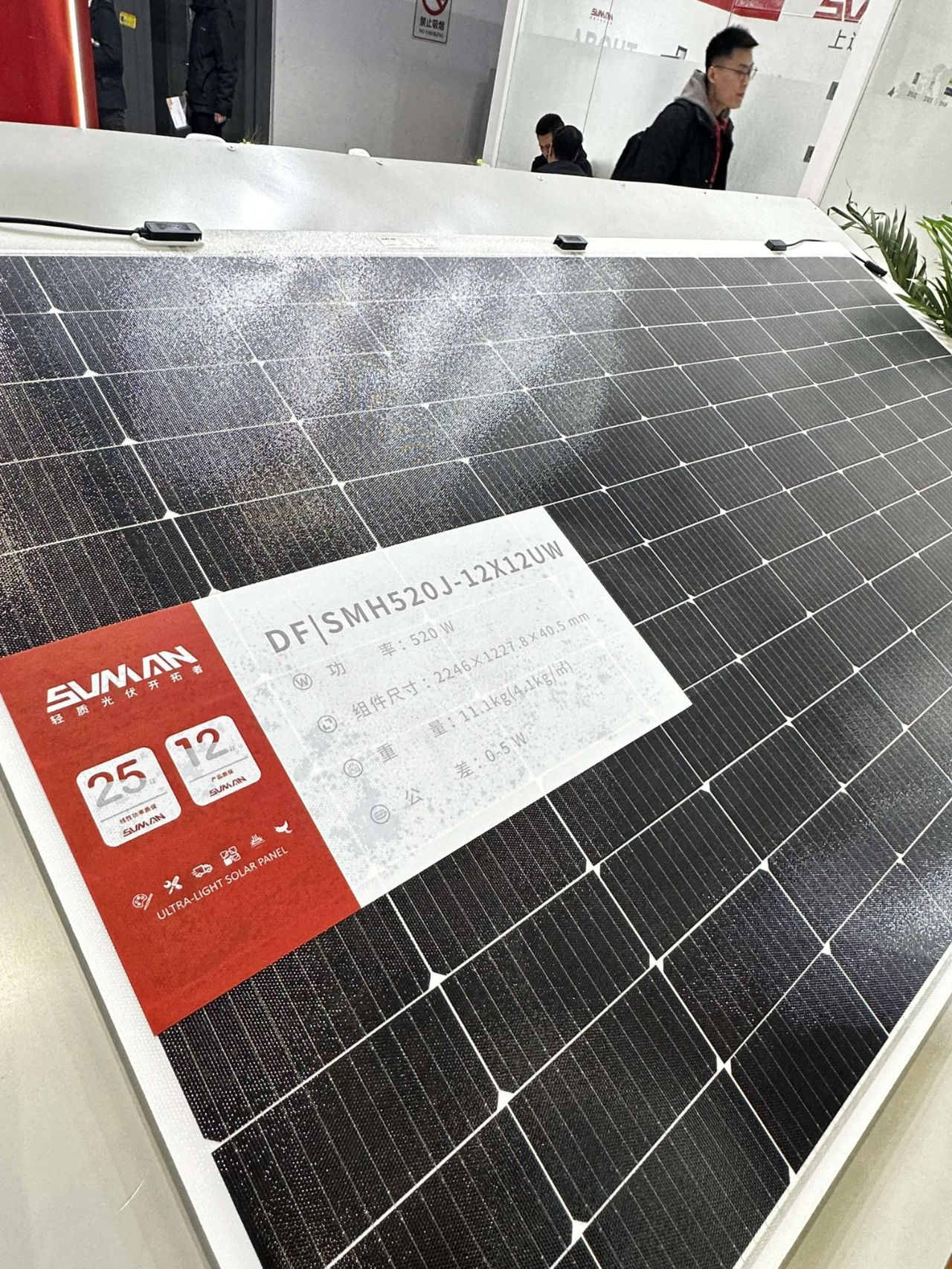 第二,頭部組件企業(yè)悉數(shù)到場,全規(guī)格、多尺寸組件震撼亮相。雖然組件環(huán)節(jié)不一定是展商數(shù)量最多的環(huán)節(jié),但在展出的產(chǎn)品中,組件的規(guī)格是最多的。從300瓦到700瓦+,從P型到N型,從TOPcon、HJT到BC、MWT、碲化鎘,不同尺寸、不同功率、不同顏色的組件應(yīng)有盡有。