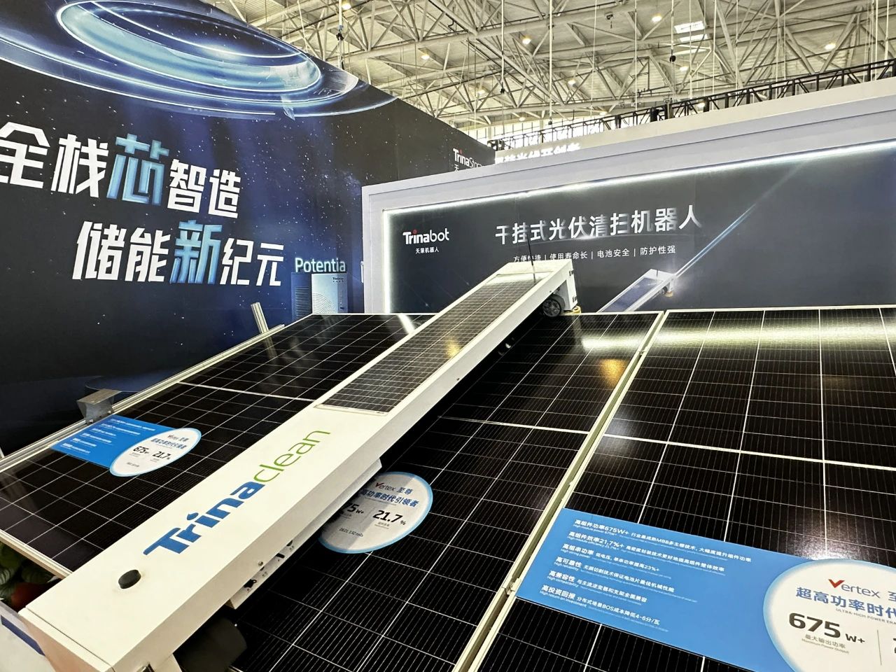 光伏企業(yè)產(chǎn)品結(jié)構(gòu)橫向布局不僅僅體現(xiàn)在儲能方面,包括阿特斯自產(chǎn)逆變器品牌,天合光能除了儲能、跟蹤支架,還推出了自動清洗機器人等;此外,各企業(yè)幾乎均有充電樁產(chǎn)品的展示,光儲充幾乎已成為本次展會的標(biāo)配,這是光伏企業(yè)在產(chǎn)品布局上的縱深變化。
