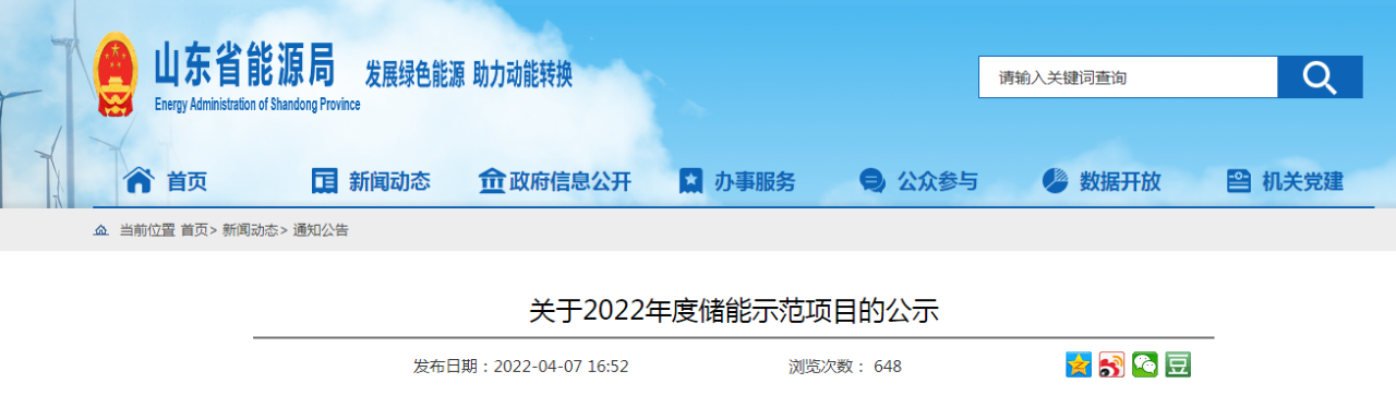 山東2022年度儲(chǔ)能示范項(xiàng)目名單公示!29項(xiàng)目超3.1GW!
