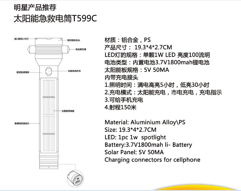 1.照明時(shí)間:滿電最高亮5小時(shí)