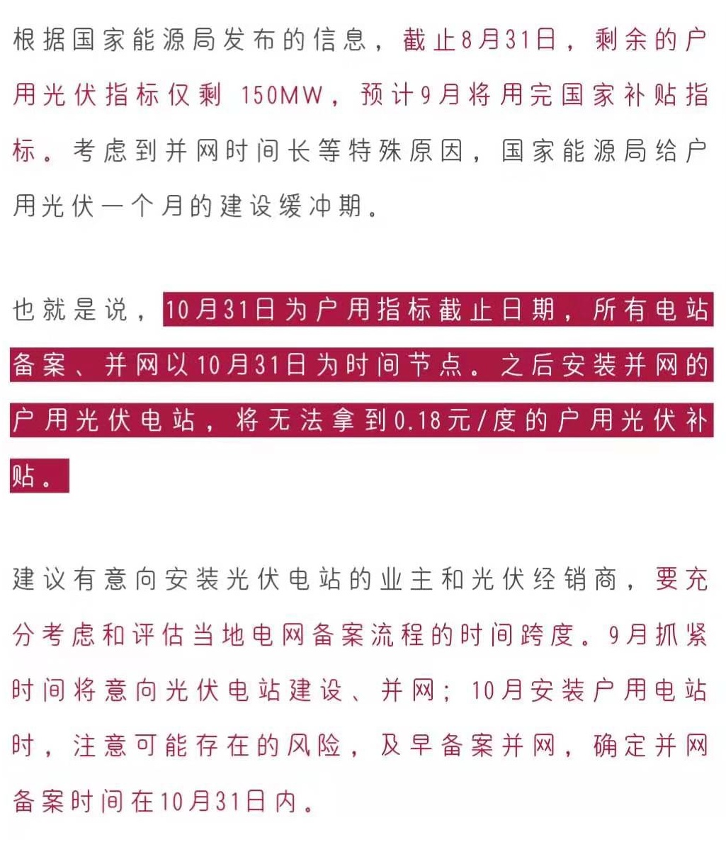 僅剩150MW!剛剛國家能源局公布戶用指標(biāo)余量,搶0.18國家補(bǔ)貼要抓緊。