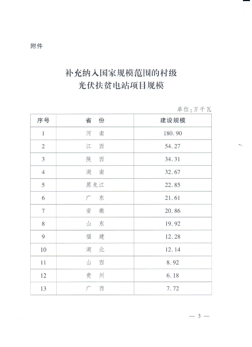 文件中指出:經(jīng)商財(cái)政部,將審核通過的458.8萬千瓦村級光伏扶貧電站項(xiàng)目納入國家規(guī)模范圍,作為光伏扶貧項(xiàng)目享受國家補(bǔ)貼政策。
