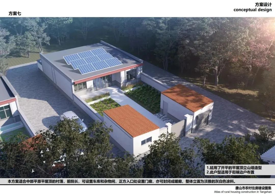 近日,河北唐山市住房和城鄉(xiāng)建設(shè)局印發(fā)了《唐山市農(nóng)村住房建設(shè)圖集》,指導(dǎo)農(nóng)村的別墅設(shè)計(jì),其中可以看到很多設(shè)計(jì)圖紙都在屋頂上安排了光伏電站。可見戶用光伏電站在農(nóng)村的普及,政府部門發(fā)布的設(shè)計(jì)圖紙都推薦安裝。