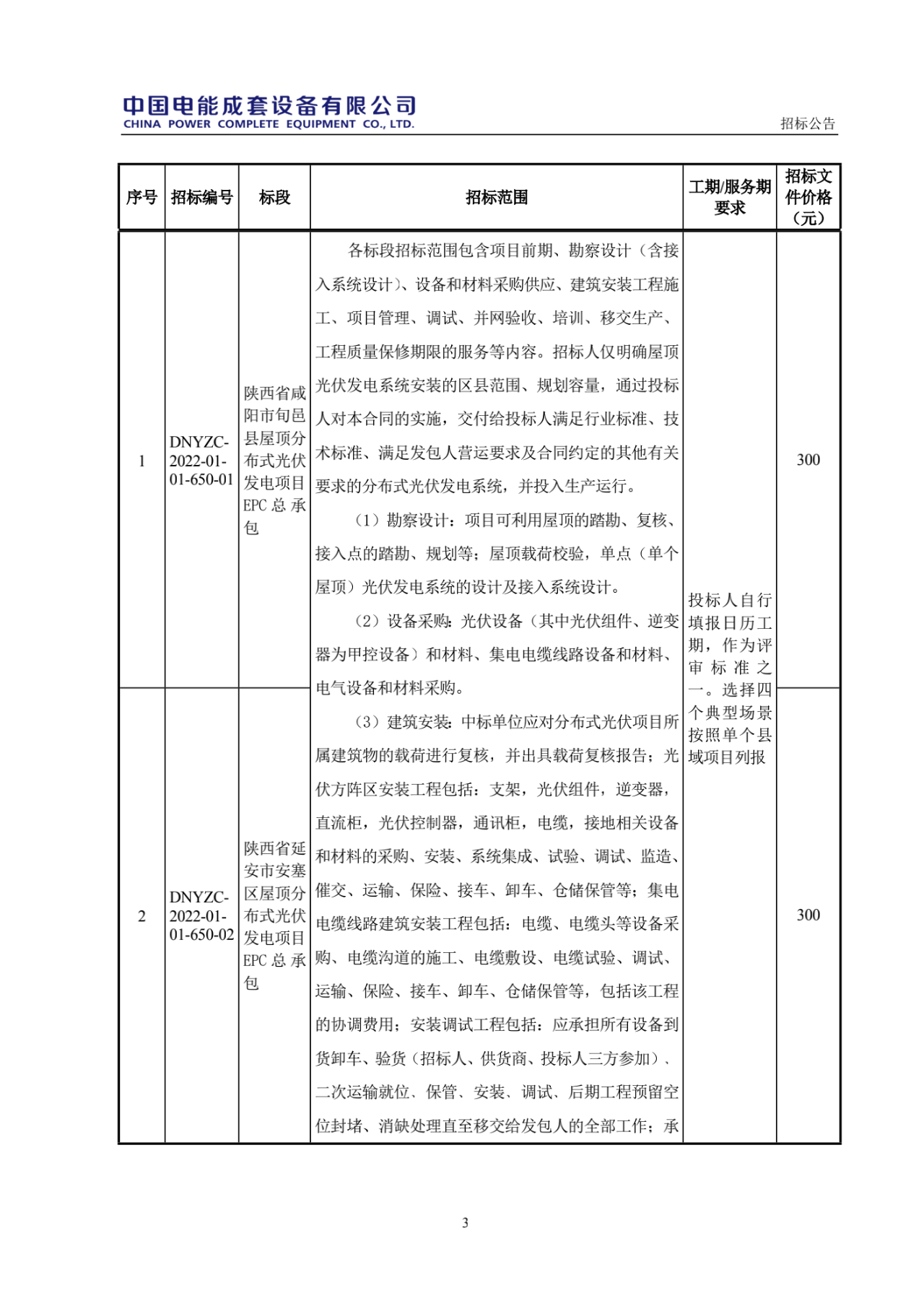 在具體招標范圍方面同樣包含勘察設(shè)計、設(shè)備采購以及基礎(chǔ)施工、安裝調(diào)試等,但不含組件及逆變器。