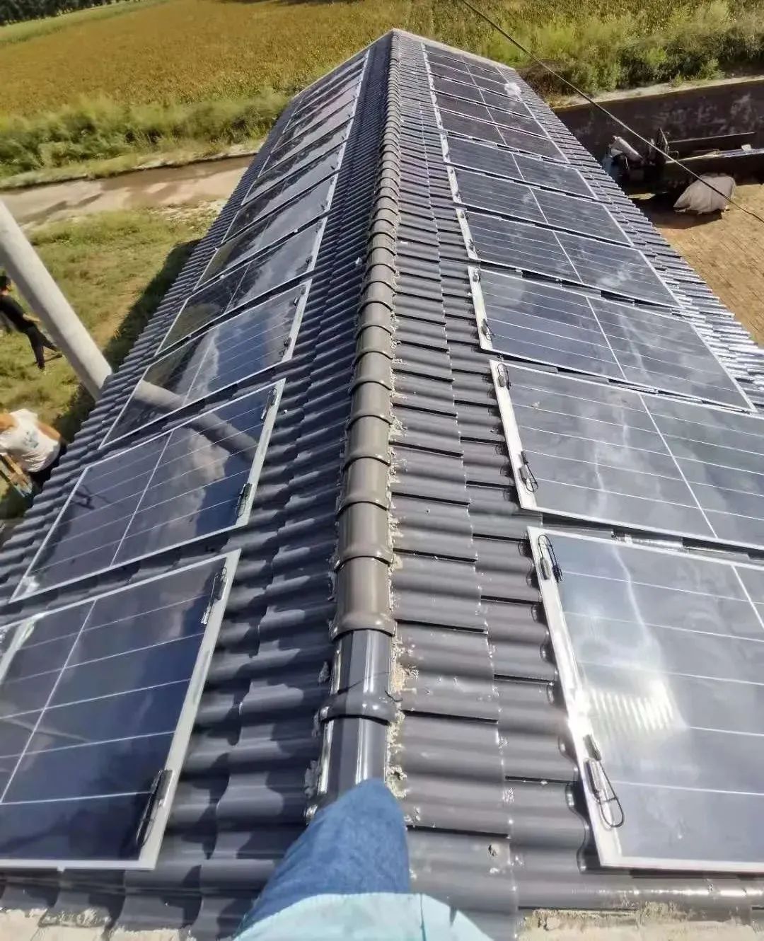 傳統(tǒng)組件需要搭配支架,外形笨重不夠美觀,還需掀開瓦片,在檀條安裝組件,易破壞瓦面,存在漏水隱患。