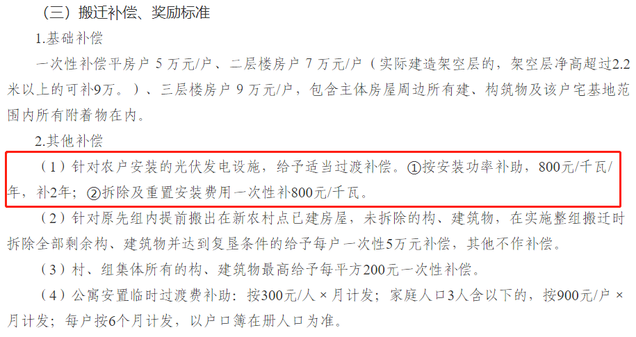 江西九江市濂溪區(qū)下發(fā)了關(guān)于《五里片區(qū)安九鐵路九江編組站安置點(diǎn)城中村改造項(xiàng)目》征求意見的公告,文件中提及關(guān)于家庭光伏方面的拆遷費(fèi)用為5000元/千瓦,人工費(fèi)用為300元/套。
