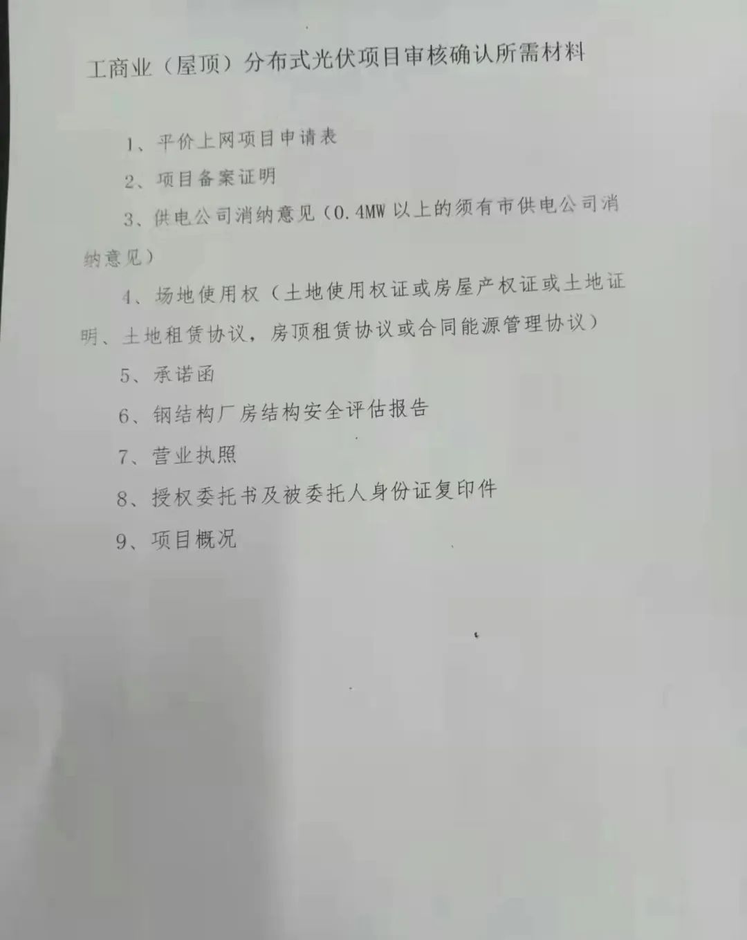 光伏系統(tǒng)建設(shè)完成后,需要向供電公司提供項(xiàng)目審核所需材料(部分地區(qū)可能有所不同),如下圖所示。