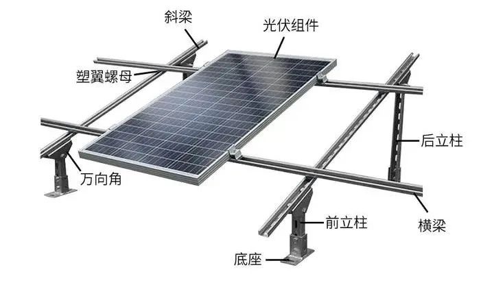 組件: 組件的鋁合金邊框與支架進(jìn)行連接,再通過引下線完成可靠接地。