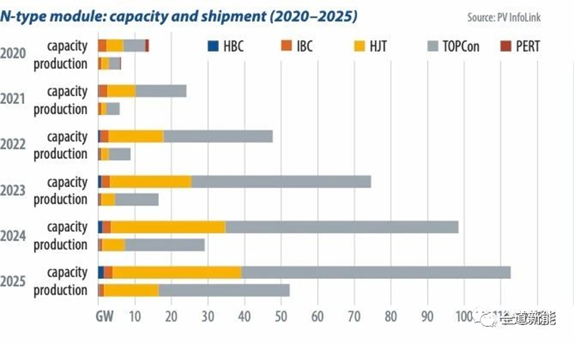 較高溢價(jià)下,光伏電站也對N型組件顯示出極高的接受度。PV InfoLink預(yù)計(jì),未來幾年N型組件產(chǎn)能與出貨量將保持高速增長,勢不可擋。