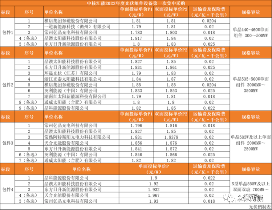 3月初,中廣核新能源2022年第一批組件杭錦旗N型組件采購公告發(fā)布,招標(biāo)的供貨設(shè)備范圍是雙面雙玻N型單晶光伏組件,共計(jì)21.47184MWp。